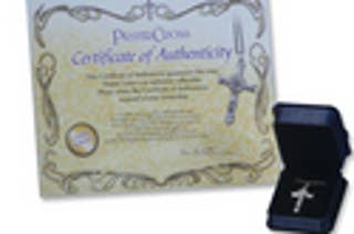 From the "As Seen on TV" folks that gave you the Aqua Globes, and Loud N' Clear, comes "The Prayer Cross" from the Montebello collection. The cross is layered in sterling silver, comes with chain and gift box. But the main selling point is the crystal on the cross when held up to light, shows the entire Lord's Prayer......Religion sells, and this commercial is running more and more on late night tv....Hallelujah!