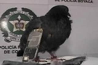 This pigeon was caught by Colombian prison guards with a tiny suitcase of cell phone parts on its back. You crazy bird!