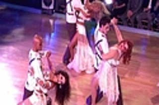 Celebrity dancers, J.R. Martinez, David Arquette and Nancy Grace, and their professional dance partners, Karina Smirnoff, Kym Johnson,and Tristan MacManus....