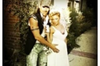 Singer LeAnn Rimes-Cibrian and her husband, actor Eddie Cibrian, dressed up as one redneck pregnant bride and redneck husband as they posed for photographs