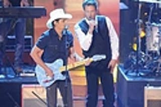 Country duet! Cowboy Brad Paisley and his BFF/tourmate, coach Blake Shelton, performed “Don’t Drink The Water” during The Voice big season finale