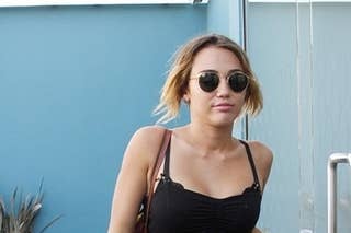Miley Cyrus Leaves Pilates In Mini Black Dress