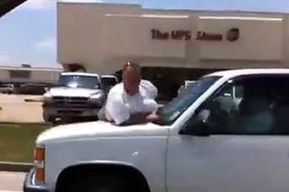 Man Stuck On The Hood Of A Truck Politely Asks Other Drivers For Help