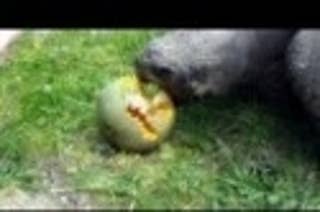 Tortoise Demolishes a Mini Jack-o-lantern!