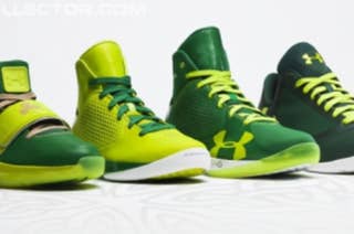 This Saturday is of course St. Patrick's Day, and Under Armour Basketball will be celebrating the holiday with this full set of green-themed sneakers for their NBA athletes.