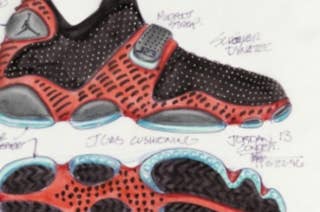 We're all familiar with the Air Jordan XIII now fifteen years later, but check out one of Tinker's original concept sketches, with quite a few differences.