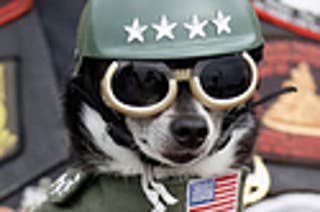 General Patton Chihuahua wants to remind you this Memorial Day that no bastard ever won a war by dying for his country. He won it by making the other poor dumb bastard die for his country. This little dude's name by the way is Isaiah and he's a 10-year-old Chihuahua. He's owned by Buddy Sours of Browntown, Virginia and this picture was taken in the Pentagon parking lot just prior to the start of the 'Rolling Thunder' rally in Washington D.C. Sarah Palin was there, too, but this little dude is WAY cooler.