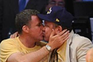 Will Ferrell and John Reilly share a tender kiss courtside at the Lakers game