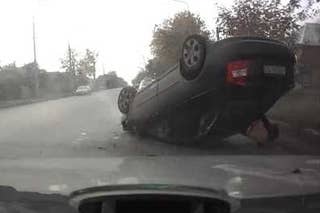 Notice the shadow of the small car when it gets hit by the truck. The car's shadow doesn't move forward when it gets hit by the truck.