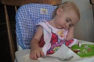 Being a baby must be hard work, because they're always falling asleep in the middle of whatever they're doing.