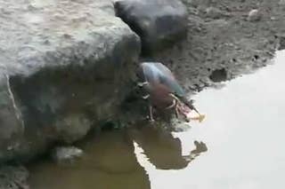A woman in a 4th generation (2012+) dark blue Honda CR-V notices the package that USPS left on the front porch, proceeds to pull into the driveway, and takes the package.