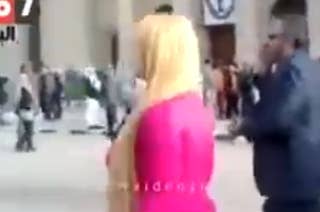 Other news websites, which picked up the video of the woman being mobbed by a group of male students at Cairo University, also ran headlines emphasizing that she was a "blonde woman."