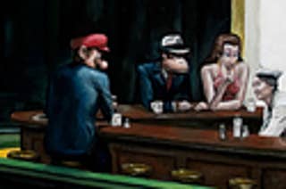 The Portland Mercury commissioned artist Bijijoo for the alt-weekly's recent cover -- a Parody of Edward Hopper's Nighthawks but with Mario, Pauline, Donkey Kong, and their creator Shigeru Miyamoto seated in the diner instead. (via.)