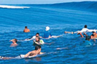 Surfers watch the Teahupoo Tahiti Reef, this reef pass is known at Passsa Hava’e and is about a half a mile out to sea. The combination of the live coral reef mixed with the angle of the open ocean swells creates one of the world’s most dangerous surfing breaks.