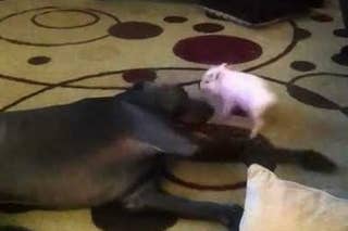 Piglet Going After A Great Dane
