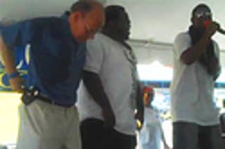 Driving home the point that he is definitely the whitest thing in this video, Congressman Cohen hops up and down and wiggles in his khakis and sweat-soaked button up, sporting his uber-geeky blackberry belt clip.
