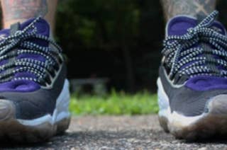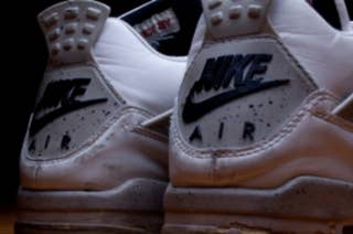 A well-worn pair of '99 Air Jordan IVs.