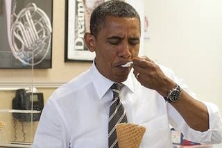 IMPEACH! In Iowa, Obama eats his mint chocolate chip ice cream cone with a spoon.